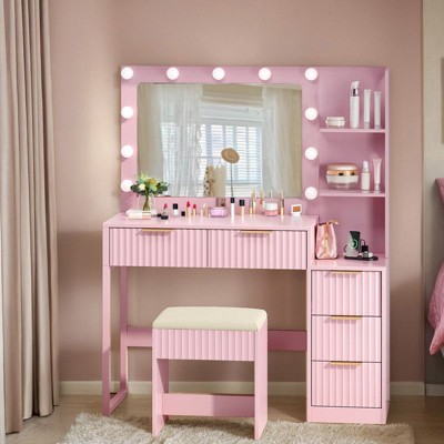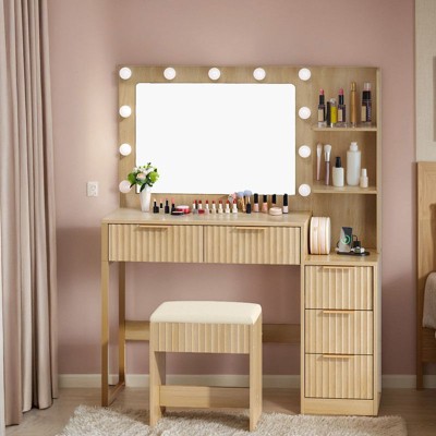 Whether you want to want to try on makeup trends or want to keep up your self-care routines, a good vanity table makes it a whole lot easier. At Target, there are a variety of vanity tables available. First, find the right table size for your space. If you’re looking for storage, a vanity with drawers is a great way to keep organized. Drawers help keep the counter tidy and keep all your essentials at easy reach. Pick from a range of mirrors, available in different sizes and shapes to suit your needs and match the decor of your bedroom. There are vanity sets with multiple mirrors to help you find the perfect angle for your beauty routine. Choose vanity sets that come with a comfy stool for your convenience. For space-saving needs, there are multi-functional vanity tables, with flip-top mirrors and storage, that doubles as a desk when closed. Be it your bathroom or bedroom, a vanity adds style and functionality to any space.