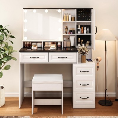 Whether you want to want to try on makeup trends or want to keep up your self-care routines, a good vanity table makes it a whole lot easier. At Target, there are a variety of vanity tables available. First, find the right table size for your space. If you’re looking for storage, a vanity with drawers is a great way to keep organized. Drawers help keep the counter tidy and keep all your essentials at easy reach. Pick from a range of mirrors, available in different sizes and shapes to suit your needs and match the decor of your bedroom. There are vanity sets with multiple mirrors to help you find the perfect angle for your beauty routine. Choose vanity sets that come with a comfy stool for your convenience. For space-saving needs, there are multi-functional vanity tables, with flip-top mirrors and storage, that doubles as a desk when closed. Be it your bathroom or bedroom, a vanity adds style and functionality to any space.