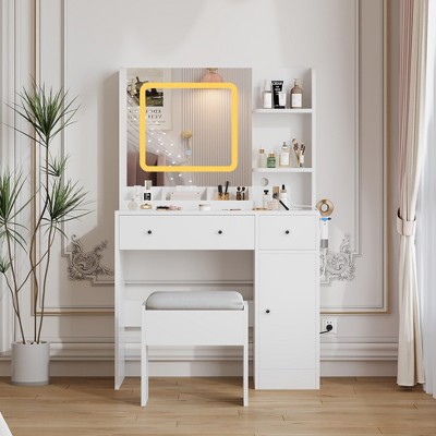 Makeup Vanity Desk with Mirror,RGB Lights,Charging Station,Storage Drawers