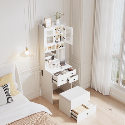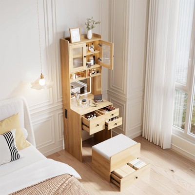 Whether you want to want to try on makeup trends or want to keep up your self-care routines, a good vanity table makes it a whole lot easier. At Target, there are a variety of vanity tables available. First, find the right table size for your space. If you’re looking for storage, a vanity with drawers is a great way to keep organized. Drawers help keep the counter tidy and keep all your essentials at easy reach. Pick from a range of mirrors, available in different sizes and shapes to suit your needs and match the decor of your bedroom. There are vanity sets with multiple mirrors to help you find the perfect angle for your beauty routine. Choose vanity sets that come with a comfy stool for your convenience. For space-saving needs, there are multi-functional vanity tables, with flip-top mirrors and storage, that doubles as a desk when closed. Be it your bathroom or bedroom, a vanity adds style and functionality to any space.