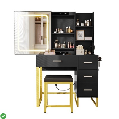 Whether you want to want to try on makeup trends or want to keep up your self-care routines, a good vanity table makes it a whole lot easier. At Target, there are a variety of vanity tables available. First, find the right table size for your space. If you’re looking for storage, a vanity with drawers is a great way to keep organized. Drawers help keep the counter tidy and keep all your essentials at easy reach. Pick from a range of mirrors, available in different sizes and shapes to suit your needs and match the decor of your bedroom. There are vanity sets with multiple mirrors to help you find the perfect angle for your beauty routine. Choose vanity sets that come with a comfy stool for your convenience. For space-saving needs, there are multi-functional vanity tables, with flip-top mirrors and storage, that doubles as a desk when closed. Be it your bathroom or bedroom, a vanity adds style and functionality to any space.