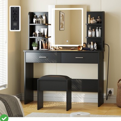 - black vanity table with drawers