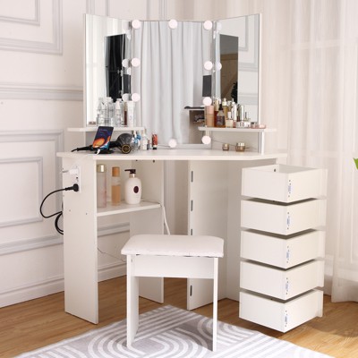 Vanity Desk with Mirror and Lights