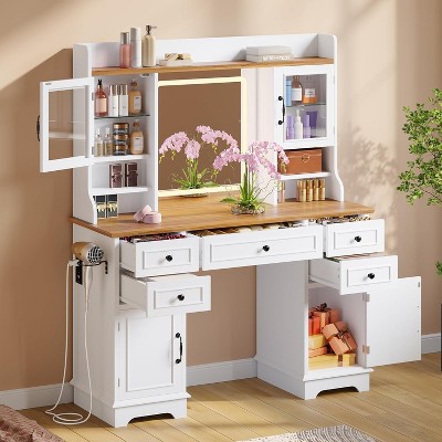 Vlsrka 3-in-1 Vanity Desk with Flip Top Mirror and Lights