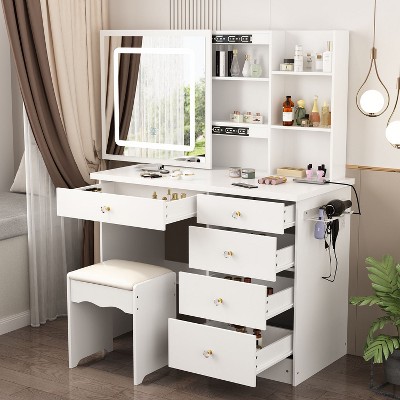Famapy Vanity Table Set With Lighted  Mirror and Charging Station