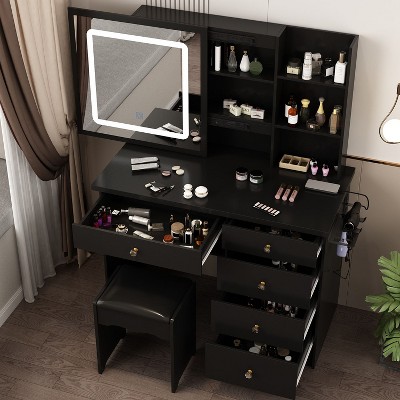 Famapy Makeup Vanity Table Set with Stool and Mirror LED Light Dressr Dressing