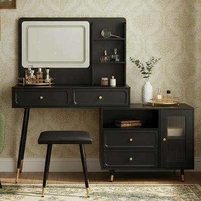Whether you want to want to try on makeup trends or want to keep up your self-care routines, a good vanity table makes it a whole lot easier. At Target, there are a variety of vanity tables available. First, find the right table size for your space. If you’re looking for storage, a vanity with drawers is a great way to keep organized. Drawers help keep the counter tidy and keep all your essentials at easy reach. Pick from a range of mirrors, available in different sizes and shapes to suit your needs and match the decor of your bedroom. There are vanity sets with multiple mirrors to help you find the perfect angle for your beauty routine. Choose vanity sets that come with a comfy stool for your convenience. For space-saving needs, there are multi-functional vanity tables, with flip-top mirrors and storage, that doubles as a desk when closed. Be it your bathroom or bedroom, a vanity adds style and functionality to any space.