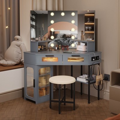 Whether you want to want to try on makeup trends or want to keep up your self-care routines, a good vanity table makes it a whole lot easier. At Target, there are a variety of vanity tables available. First, find the right table size for your space. If you’re looking for storage, a vanity with drawers is a great way to keep organized. Drawers help keep the counter tidy and keep all your essentials at easy reach. Pick from a range of mirrors, available in different sizes and shapes to suit your needs and match the decor of your bedroom. There are vanity sets with multiple mirrors to help you find the perfect angle for your beauty routine. Choose vanity sets that come with a comfy stool for your convenience. For space-saving needs, there are multi-functional vanity tables, with flip-top mirrors and storage, that doubles as a desk when closed. Be it your bathroom or bedroom, a vanity adds style and functionality to any space.
