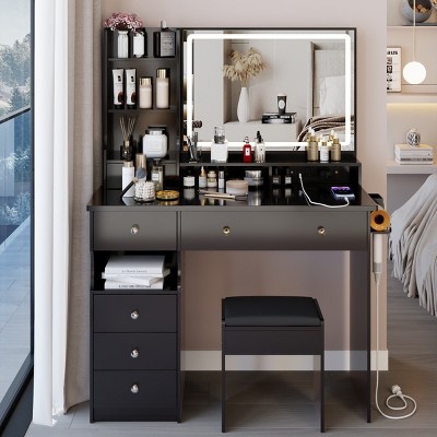 Vlsrka 3-in-1 Vanity Desk with Flip Top Mirror and Lights