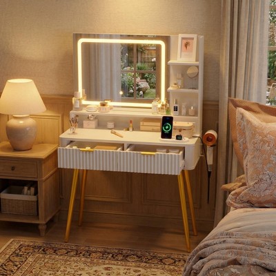 Whether you want to want to try on makeup trends or want to keep up your self-care routines, a good vanity table makes it a whole lot easier. At Target, there are a variety of vanity tables available. First, find the right table size for your space. If you’re looking for storage, a vanity with drawers is a great way to keep organized. Drawers help keep the counter tidy and keep all your essentials at easy reach. Pick from a range of mirrors, available in different sizes and shapes to suit your needs and match the decor of your bedroom. There are vanity sets with multiple mirrors to help you find the perfect angle for your beauty routine. Choose vanity sets that come with a comfy stool for your convenience. For space-saving needs, there are multi-functional vanity tables, with flip-top mirrors and storage, that doubles as a desk when closed. Be it your bathroom or bedroom, a vanity adds style and functionality to any space.