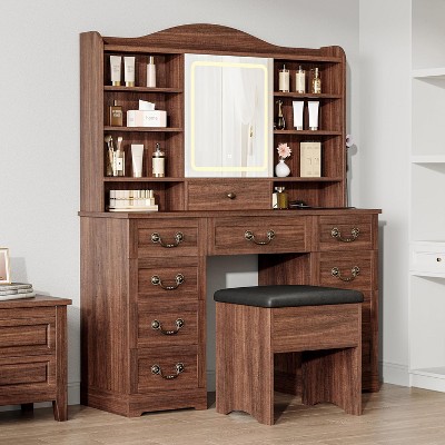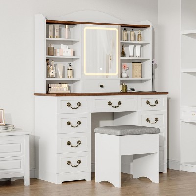 Resenkos Bedroom Vanity Desk with LED Lighted Mirror - White