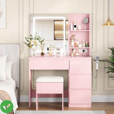 Whether you want to want to try on makeup trends or want to keep up your self-care routines, a good vanity table makes it a whole lot easier. At Target, there are a variety of vanity tables available. First, find the right table size for your space. If you’re looking for storage, a vanity with drawers is a great way to keep organized. Drawers help keep the counter tidy and keep all your essentials at easy reach. Pick from a range of mirrors, available in different sizes and shapes to suit your needs and match the decor of your bedroom. There are vanity sets with multiple mirrors to help you find the perfect angle for your beauty routine. Choose vanity sets that come with a comfy stool for your convenience. For space-saving needs, there are multi-functional vanity tables, with flip-top mirrors and storage, that doubles as a desk when closed. Be it your bathroom or bedroom, a vanity adds style and functionality to any space.