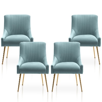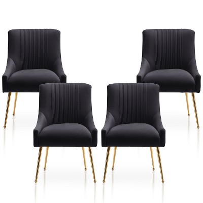 SEYNAR Modern Glam Boucle Pleated Velvet Dining Chair or Vanity Chair Set of 4 with Rear Handle