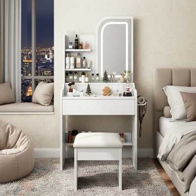 Whether you want to want to try on makeup trends or want to keep up your self-care routines, a good vanity table makes it a whole lot easier. At Target, there are a variety of vanity tables available. First, find the right table size for your space. If you’re looking for storage, a vanity with drawers is a great way to keep organized. Drawers help keep the counter tidy and keep all your essentials at easy reach. Pick from a range of mirrors, available in different sizes and shapes to suit your needs and match the decor of your bedroom. There are vanity sets with multiple mirrors to help you find the perfect angle for your beauty routine. Choose vanity sets that come with a comfy stool for your convenience. For space-saving needs, there are multi-functional vanity tables, with flip-top mirrors and storage, that doubles as a desk when closed. Be it your bathroom or bedroom, a vanity adds style and functionality to any space.