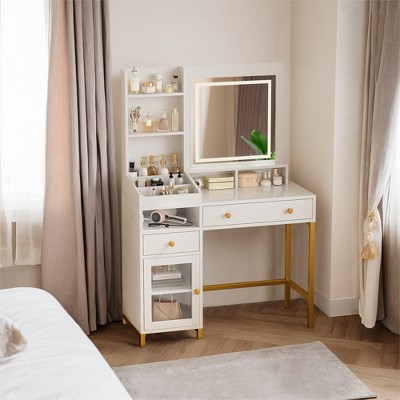 Whether you want to want to try on makeup trends or want to keep up your self-care routines, a good vanity table makes it a whole lot easier. At Target, there are a variety of vanity tables available. First, find the right table size for your space. If you’re looking for storage, a vanity with drawers is a great way to keep organized. Drawers help keep the counter tidy and keep all your essentials at easy reach. Pick from a range of mirrors, available in different sizes and shapes to suit your needs and match the decor of your bedroom. There are vanity sets with multiple mirrors to help you find the perfect angle for your beauty routine. Choose vanity sets that come with a comfy stool for your convenience. For space-saving needs, there are multi-functional vanity tables, with flip-top mirrors and storage, that doubles as a desk when closed. Be it your bathroom or bedroom, a vanity adds style and functionality to any space.
