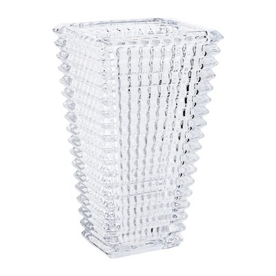 VECELO Flared Clear Ribbed Glass Decorative Vase, Tabletop Centerpiece
