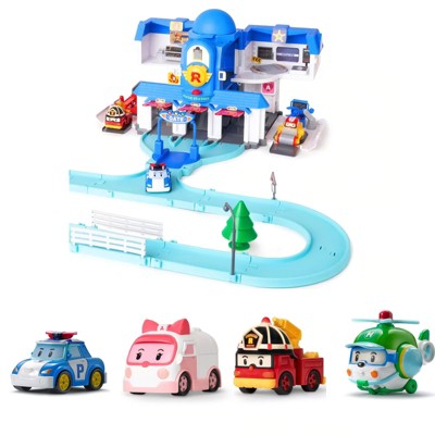 Robocar Poli Diecast Cars Yellow School Bus Toy, Kids' Diecast Cars Carrier Bus, Collectible Vehicle Model Playset (4pcs Diecast Cars Included)