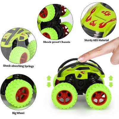 Monster Truck Toys Friction Powered Toy Cars Push and Go Vehicles for Kids Christmas Birthday Party Gift for Boys Girls Aged 3-5 Green
