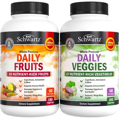 Daily Fruits and Veggies Supplement, 47 Whole Food Fruits and Vegetables for Natural Balance of Vitamins, Minerals & Noni, Bioschwartz, 180ct (2pack)