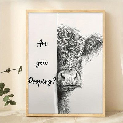Paaaawaters 1 Framed Canvas Painting on Wood, Funny Highland Cattle Canvas Wall Art