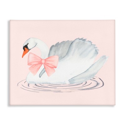 Stupell Industries White Swan with Pink Ribbon Canvas Art