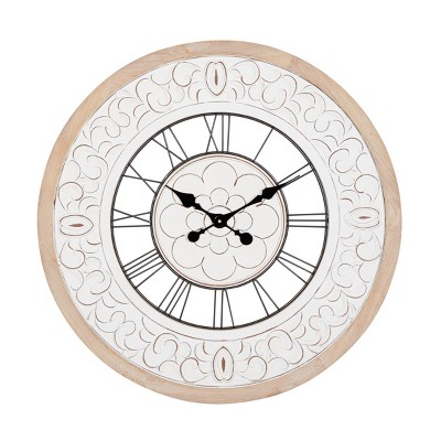Add a timeless accent to your decor with a stylish or simply functional wall clock. An oversized black metal clock helps create an interesting focal point in your living room interior or any space. Target is a go-to, whether you’re looking for a wooden farmhouse-style clock or a decorative wall clock with metal color & a vintage brass finish. Check out Target.com to find the perfect wall clock to complement your decor style & taste. A large wall clock with black minute hands & modern roman numerals on an off-white base makes a minimalist statement to spruce up any bare wall. Dress up your mantel with a decorative wood clock with stylized arabic numerals or bring alive your kitchen space with rustic timepiece with a pendulum & chimes. Like your silence better? Choose an analog wall clock with a non-ticking design that pairs perfectly with an understated, modern aesthetic.