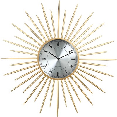 Add a timeless accent to your decor with a stylish or simply functional wall clock. An oversized black metal clock helps create an interesting focal point in your living room interior or any space. Target is a go-to, whether you’re looking for a wooden farmhouse-style clock or a decorative wall clock with metal color & a vintage brass finish. Check out Target.com to find the perfect wall clock to complement your decor style & taste. A large wall clock with black minute hands & modern roman numerals on an off-white base makes a minimalist statement to spruce up any bare wall. Dress up your mantel with a decorative wood clock with stylized arabic numerals or bring alive your kitchen space with rustic timepiece with a pendulum & chimes. Like your silence better? Choose an analog wall clock with a non-ticking design that pairs perfectly with an understated, modern aesthetic.