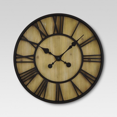 Add a timeless accent to your decor with a stylish or simply functional wall clock. An oversized black metal clock helps create an interesting focal point in your living room interior or any space. Target is a go-to, whether you’re looking for a wooden farmhouse-style clock or a decorative wall clock with metal color & a vintage brass finish. Check out Target.com to find the perfect wall clock to complement your decor style & taste. A large wall clock with black minute hands & modern roman numerals on an off-white base makes a minimalist statement to spruce up any bare wall. Dress up your mantel with a decorative wood clock with stylized arabic numerals or bring alive your kitchen space with rustic timepiece with a pendulum & chimes. Like your silence better? Choose an analog wall clock with a non-ticking design that pairs perfectly with an understated, modern aesthetic.