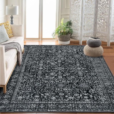 TackView Area Rugs for Living Room Bedroom, Large Washable Rug, Vintage Floral Boho Non Slip & Low Pile
