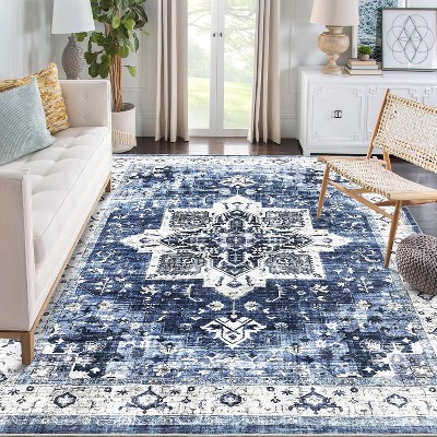 Vintage Medallion Area Rugs Washable Stain Resistant Non-Shedding Floor Cover