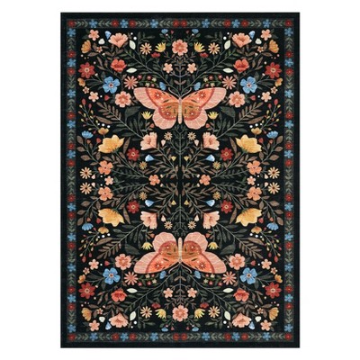 Washable Farmhouse Rug Non-Slip Floral Butterfly Bedroom Carpet
