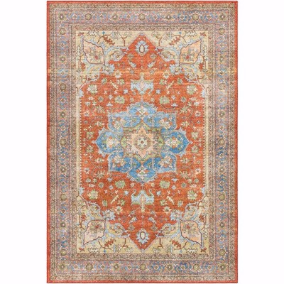 Vintage Rug Floral Printed Distressed Area Rug Machine Washable Rug