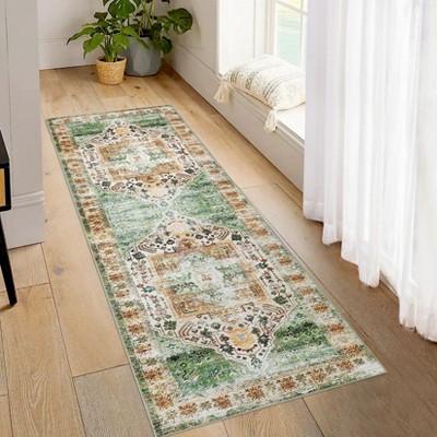 Vintage Floral Rug Washable Rug Non Slip for Living Rooms