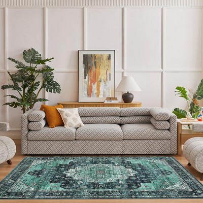 Machine Washable Rug, Ultra-Thin Vintage Medallion Area Rug for Living Room