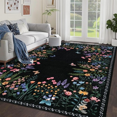 Floral Washable Area Rugs Non-Slip Non-Shedding Contemporary Accent Rugs