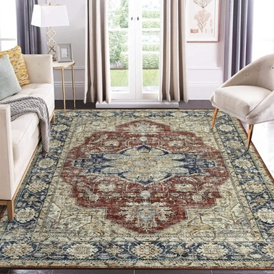 MontVoo Machine Washable Oriental Floral Area Rug Brown