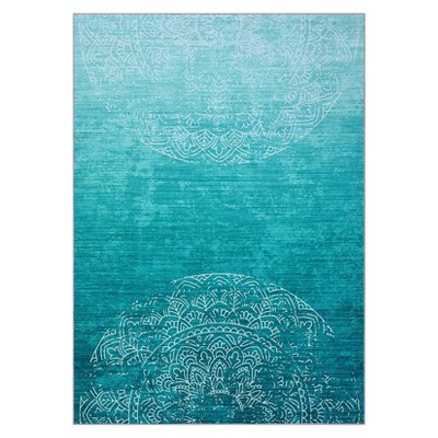 MontVoo Vintage Distressed Medallion Washable Area Rug Blue