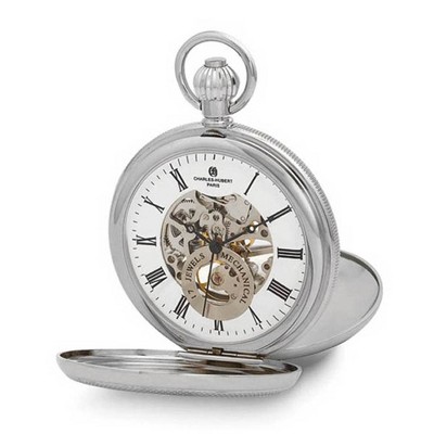 Black Bow Jewelry Charles Hubert Chrome Finish Double Cover Open Window Pocket Watch