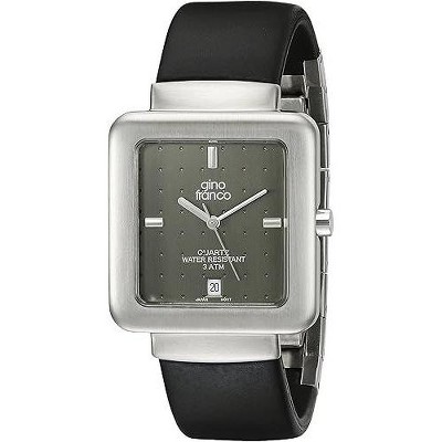 Gino Franco Men's Square Stainless Steel Case and Rubber Strap Watch
