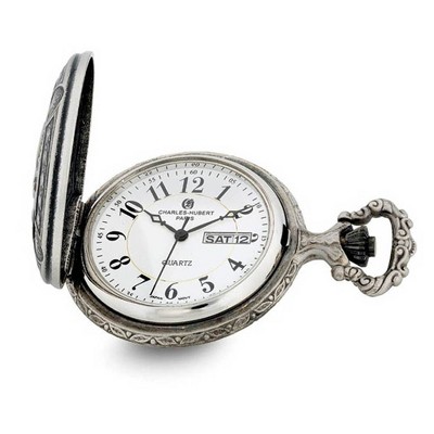 Black Bow Jewelry Charles Hubert Solid Stainless White Dial Full Face Pocket Watch