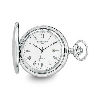 Black Bow Jewelry Charles Hubert Stainless Steel White Dial with Date Pocket Watch 48mm
