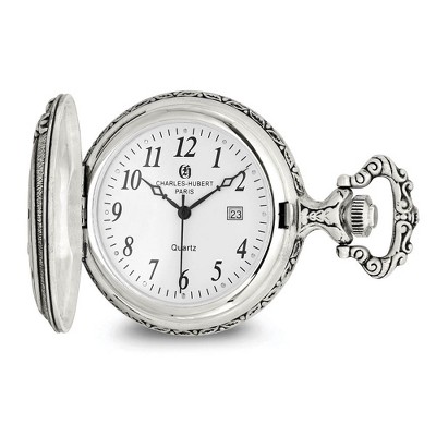 Black Bow Jewelry Charles Hubert Chrome Finish Brass 2-Photo Insert Pocket Watch 48mm