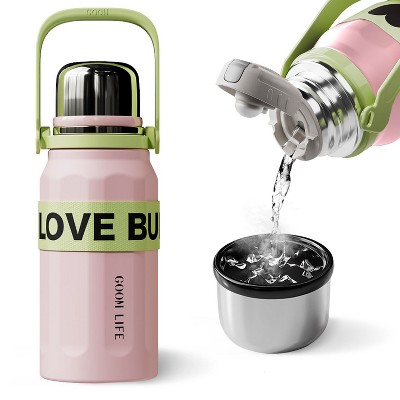 Byo 64 Oz Double Walled Insulated Stainless Steel Bottle (Pink), BPA-Free Leakproof Chug Lid, Durable Sweat-Proof Silicone Grip Handle