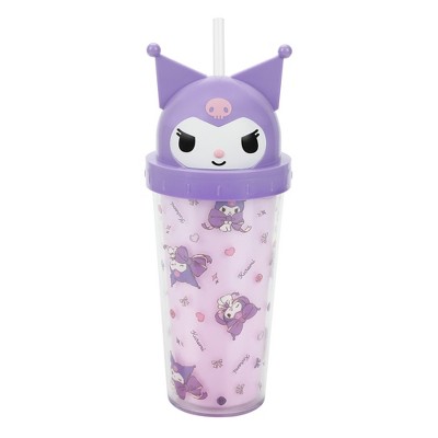 Kuromi Hearts Ribbons & Roses 16 Oz Purple Plastic Cup With 3D Character Topper