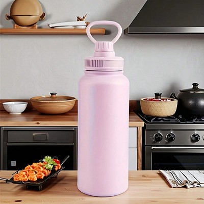 BABYYER 30 Oz Black Stainless Steel Vacuum Insulated Water Bottle, Sweat-Proof Wide Mouth Cup With Handle, Leak-Proof For Travel,For Outdoor Lovers