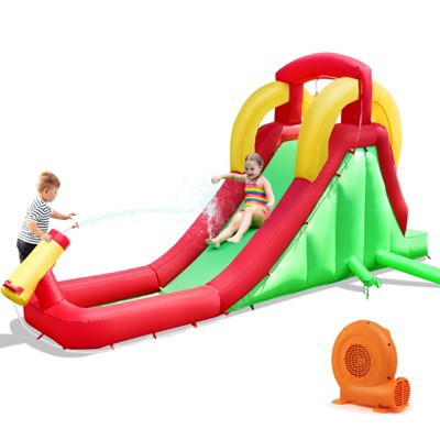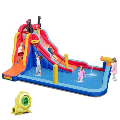 Enjoy some fun in the sun, sliding down water slides! Bring the fun of water parks to your home in your own back yard with a cool water slide. At Target, find a large collection of water slides to choose from. Pick from inflatable water slides, bounce houses, splash pools and play pools. Spend endless hours out in the sun with your kiddos in a fun park and slide bounce house. These fancy slides feature a climbing wall, dual slides, water cannons and a tunnel. Explore a range of triple slides that provide the ultimate mix of fun and competition for little ones. This cool slide launches kids into a super-fast ride that ends with a drench pool splash landing. The three lanes are perfect for racing and fun days in the backyard. Your kiddos are sure to love a splash party this summer! Browse through a range of water slides and find the right one for your little ones.