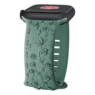 HTUTWOO Rose Engraved Apple Watch Band, Floral Sport Silicone Strap 38/40/41/42/44/45/46/49 mm for iWatch Series 11 10 9 8 7 6 5 4 3 2 1 SE Ultra