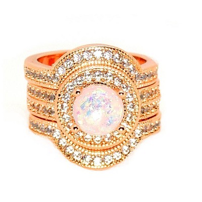 Consuelo 3 Ring Bridal Set Fire Opal Women Engagement Band Ginger Lyne Collection