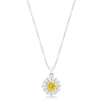 Slickblue Women’s Rhodium Plated Bridal Pendant Necklace, Cubic Zirconia, Classic Style, 17.5" Chain, 4 Color Options