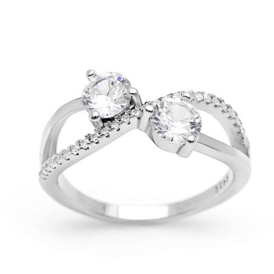 Giulia Engagement Ring Sterling Silver Cz 2 Stone Womens Ginger Lyne Collection
